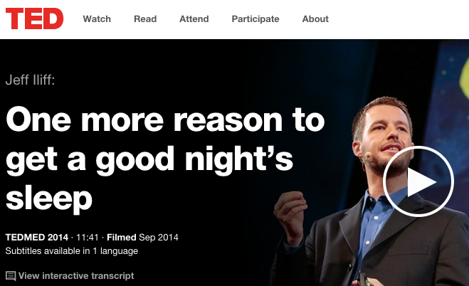 First up a TED talk on One More Reason to Get a Good NIght Sleep